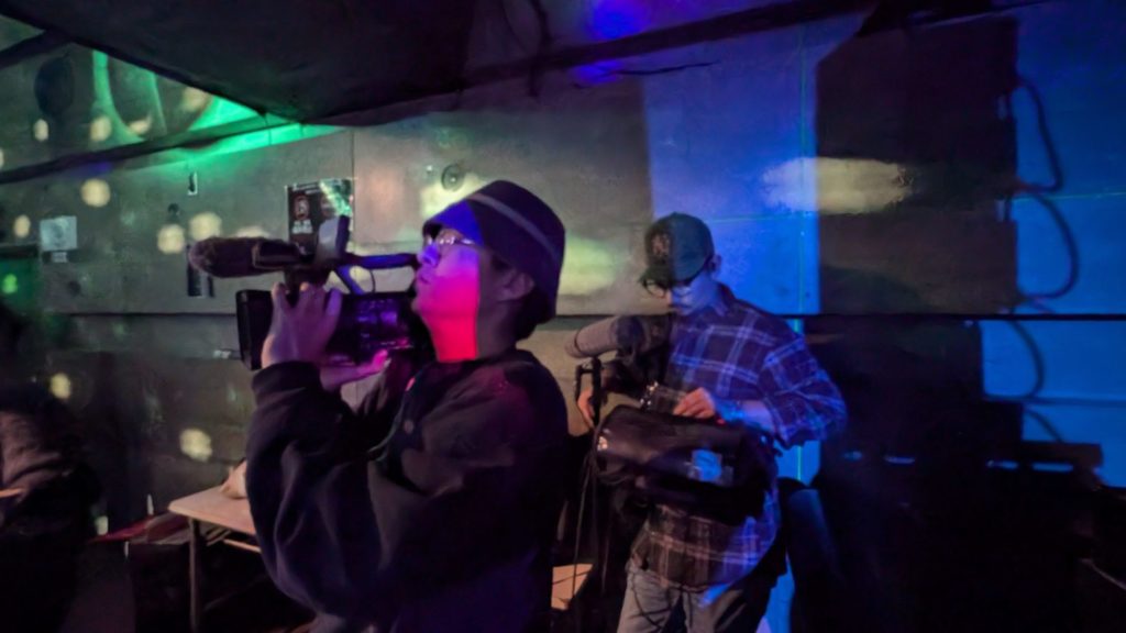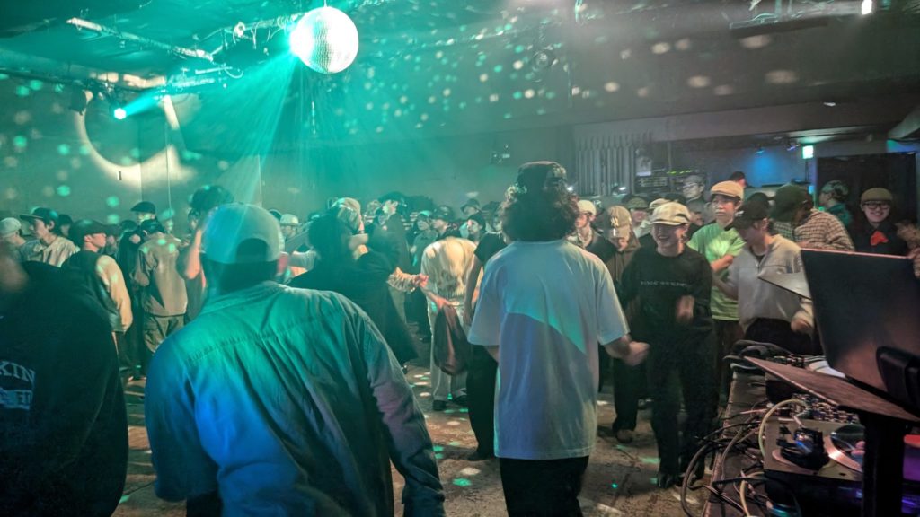 Finally we went to film a dance competition for university students in Kichijoji. Our main objectives were to see DJ Shinichi playing there and to interview some Generation Z people who collect analogue records. DJ Shinichi had a quiet image when we interviewed him at his home, but at this event he was super cool. As it was a dance event, he was playing extremely intense.
