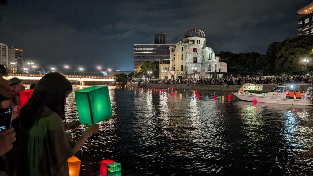 The traditional lantern floating on the Motoyasu River.